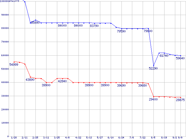 Socket 940 (FSB 1000MHz,L2 1MB)の最安値推移