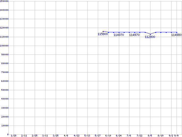 | LGA 775 (FSB 800MHz,L2 1MB×2,Dual Core,Hyper-Threading,EM64T対応)の最安値推移 | | | (2005年1月28日~2005年9月9日) |
