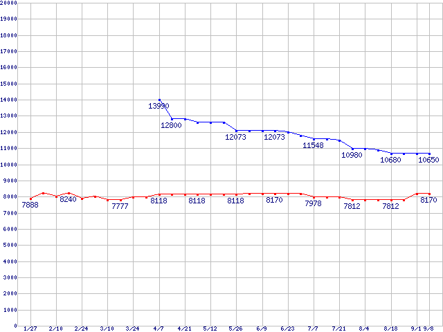 SpinPoint (7200rpm,Ultra ATA/133,8MB)の最安値推移