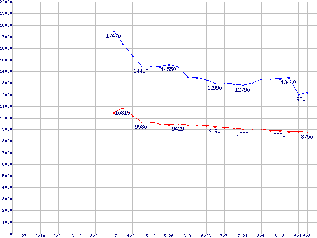Deskstar 7K80 (7200rpm,Serial ATA II/3Gbps)の最安値推移