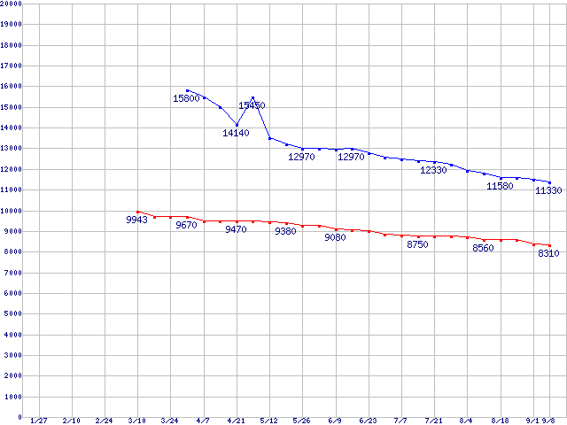 Deskstar 7K400 (7200rpm,Ultra ATA/100)の最安値推移