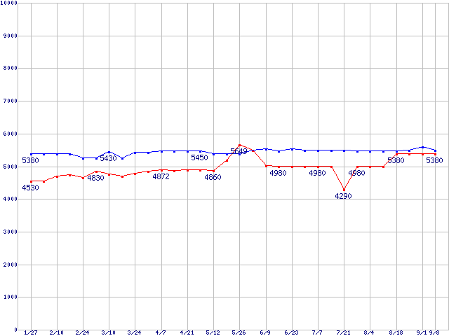 Deskstar 7K80 (7200rpm,Ultra ATA/100)の最安値推移