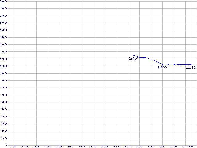 | SpinPoint (7200rpm,Ultra ATA/133,8MB)の最安値推移 | | | (2005年1月27日~2005年9月8日) |