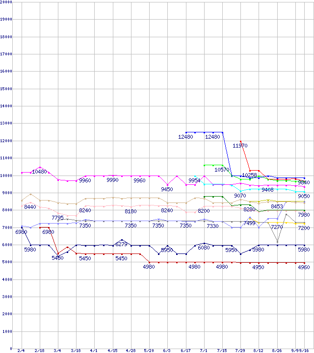 CPU主要製品(最安値1万円~2万円未満)の最安値推移