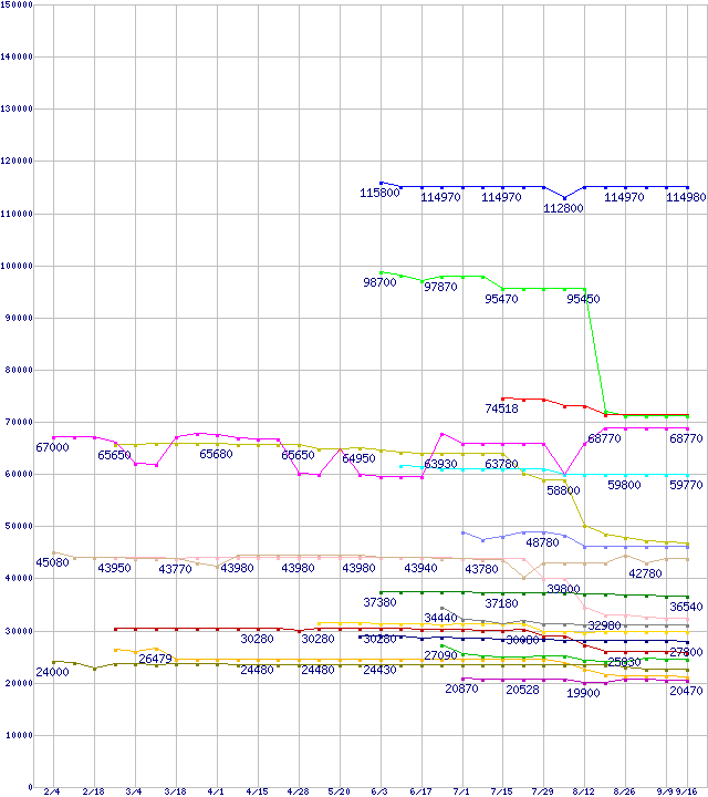 ※点線部は販売店が確認できなかった、または調査データがないことを示します
