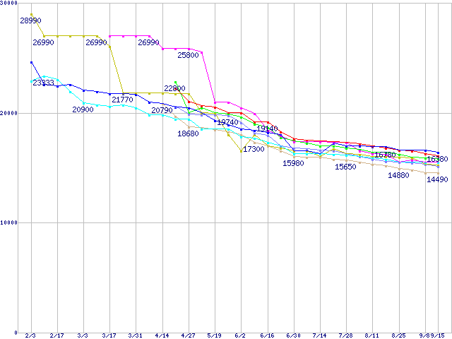 HDD 400GB以上の最安値推移