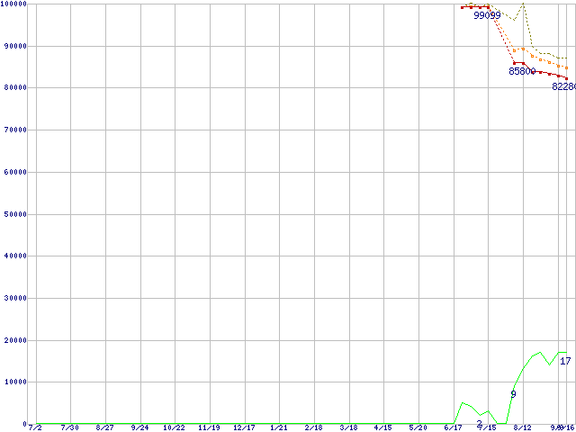 | Athlon 64 X2 4600+ (2.4GHz,L2 512KBx2)の価格推移 | | | (2004年7月2日~2005年9月16日) |