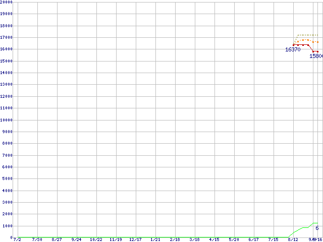 | Sempron 3400+ (2GHz,L2 256KB)の価格推移 | | | (2004年7月2日~2005年9月16日) |