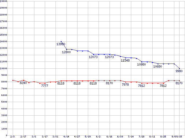 WD Caviar[Special Edition] (7200rpm,Ultra ATA/100,8MB)の最安値推移
