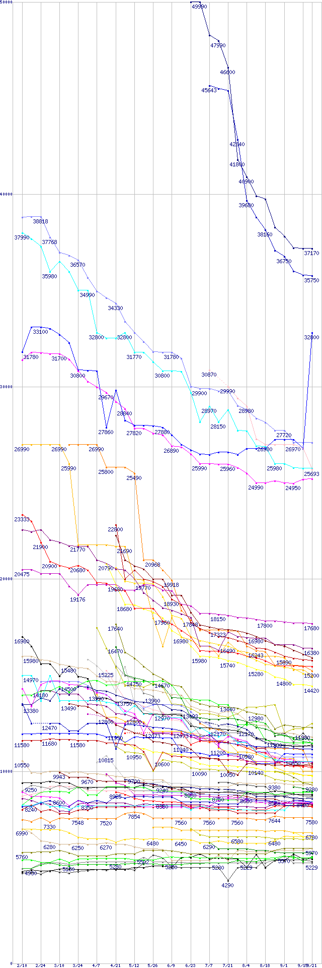| HDD主要製品の最安値推移 | | | (2005年2月10日~2005年9月21日) |