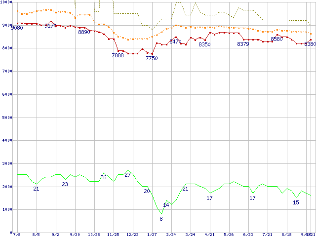 | HDS722516VLAT20 (160GB,2MB)の価格推移 | | | (2004年7月8日~2005年9月21日) |