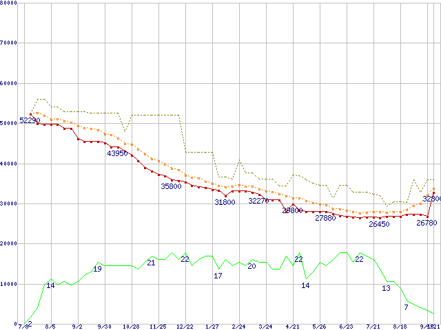 | HDS724040KLSA80 (400GB,8MB)の価格推移 | | | (2004年7月8日~2005年9月21日) |