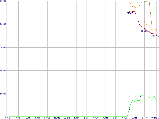 | HDS725050KLAT80 (500GB,8MB)の価格推移 | | | (2004年7月8日~2005年9月21日) |