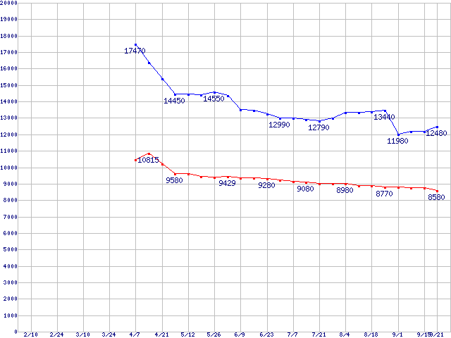 Deskstar 7K80 (7200rpm,Serial ATA II/3Gbps)の最安値推移