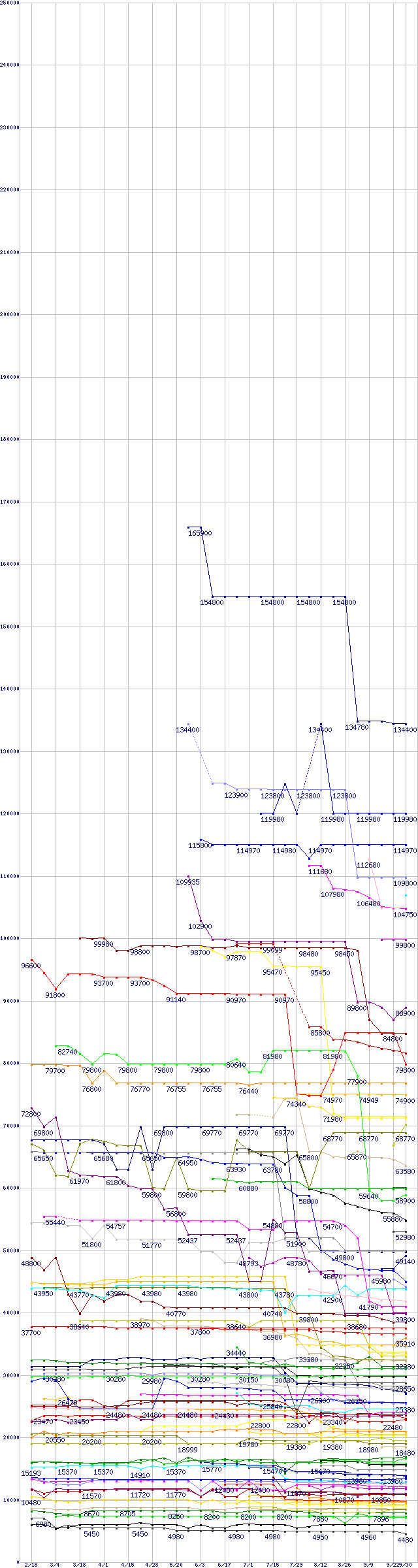 ※製品名をクリックすると個別のグラフを表示します ※点線部は販売店が確認できなかった、または調査データがないことを示します |