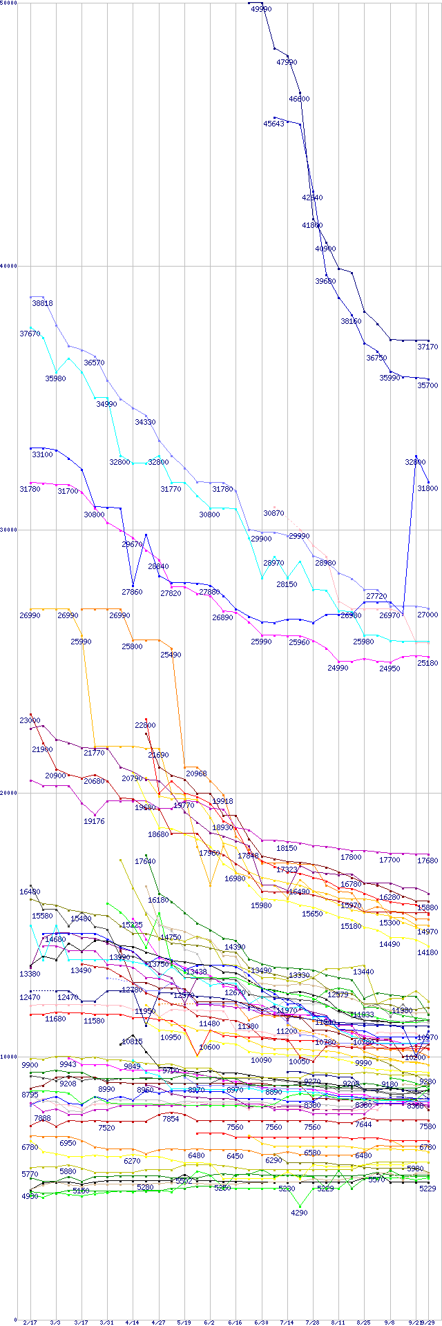 | HDD主要製品の最安値推移 | | | (2005年2月17日~2005年9月29日) |