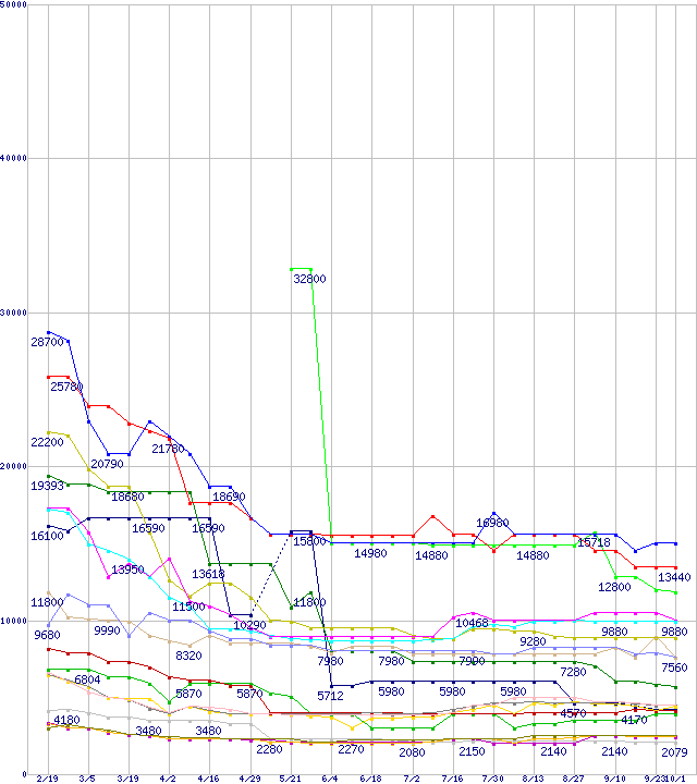 ※点線部は販売店が確認できなかった、または調査データがないことを示します