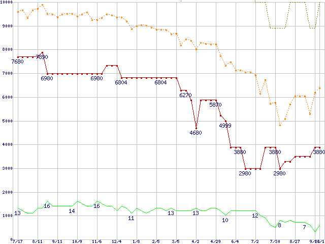 PC2700(DDR333) DDR SDRAM DIMM ECC対応 Registeredタイプの最安値推移
