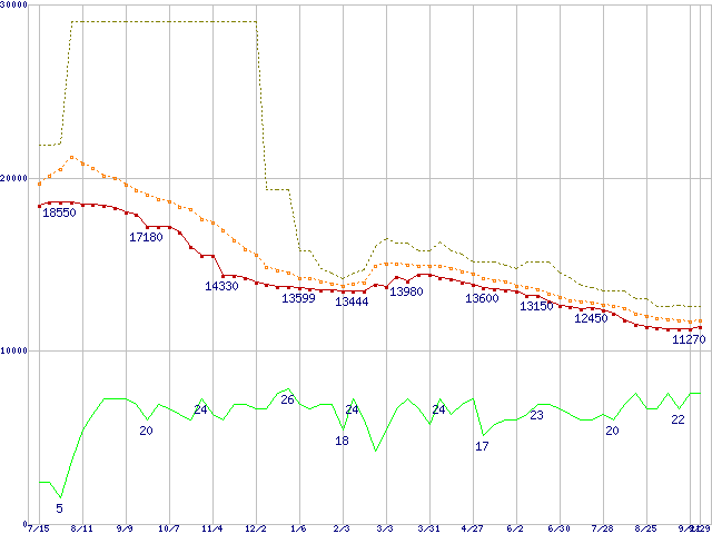 | HDS722525VLSA80 (250GB,8MB)の価格推移 | | | (2004年7月15日~2005年9月29日) |