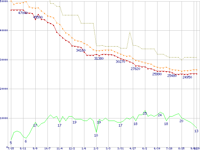 | HDS724040KLAT80 (400GB,8MB)の価格推移 | | | (2004年7月15日~2005年9月29日) |