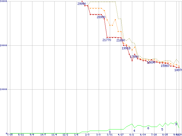 | WD3200JB (320GB)の価格推移 | | | (2004年7月15日~2005年9月29日) |