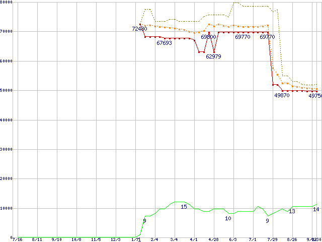 | Pentium M 770 (2.13GHz)の価格推移 | | | (2004年7月16日~2005年9月30日) |