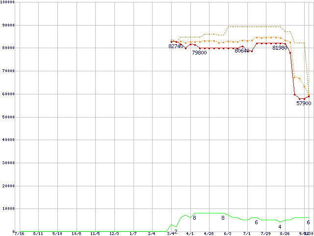 | Xeon 3.40GHz (L2 2MB)の価格推移 | | | (2004年7月16日~2005年9月30日) |