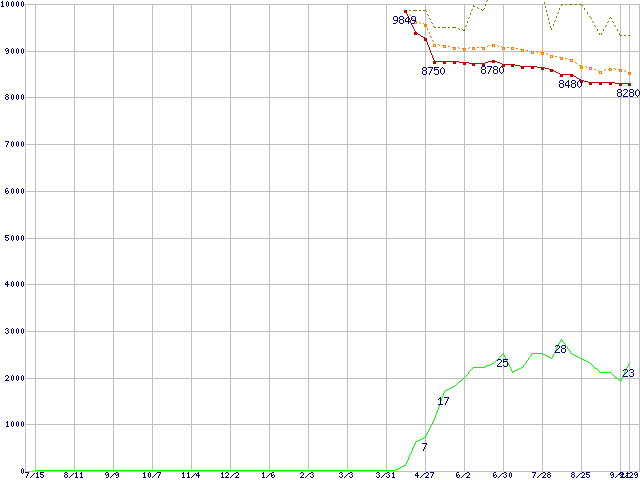 | 6L160P0 (160GB,8MB)の価格推移 | | | (2004年7月15日~2005年9月29日) |