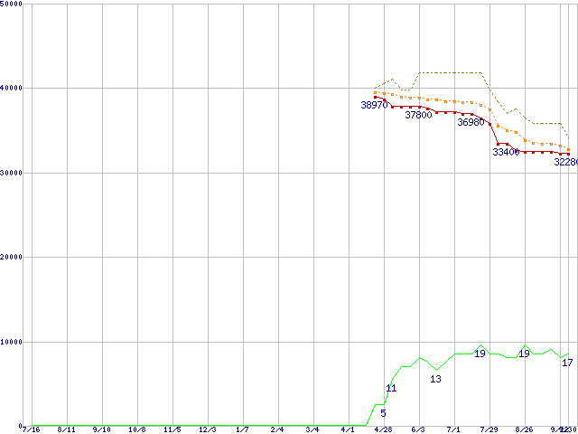 | Athlon 64 3700+ (2.2GHz,L2 1MB)の価格推移 | | | (2004年7月16日~2005年9月30日) |
