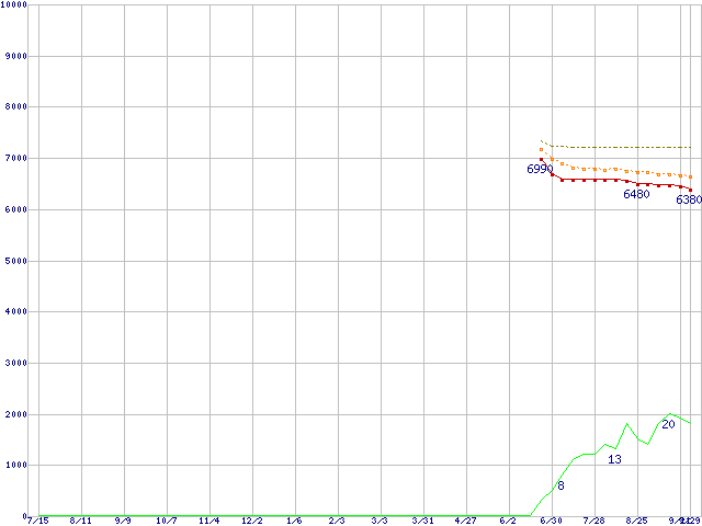 | 6L080P0 (80GB,8MB)の価格推移 | | | (2004年7月15日~2005年9月29日) |