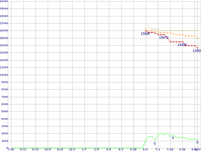 | Sempron 3300+ (2GHz,L2 128KB)の価格推移 | | | (2004年7月16日~2005年9月30日) |