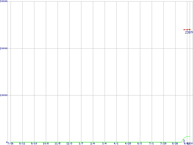 | Mobile Athlon 64 3400+(2.2GHz) バルクの価格推移 | | | (2004年7月16日~2005年9月30日) |