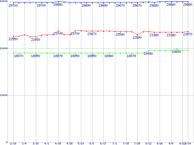 Socket 478 (FSB 800MHz,L2 1MB,Hyper-Threading)の最安値推移