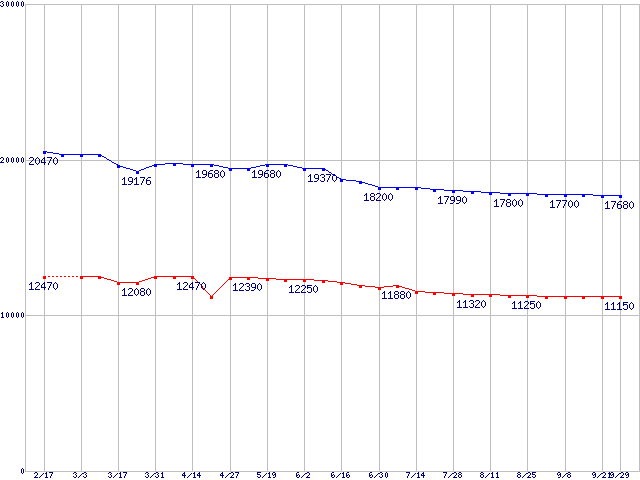 WD Raptor (10000rpm,Serial ATA/150,8MB)の最安値推移