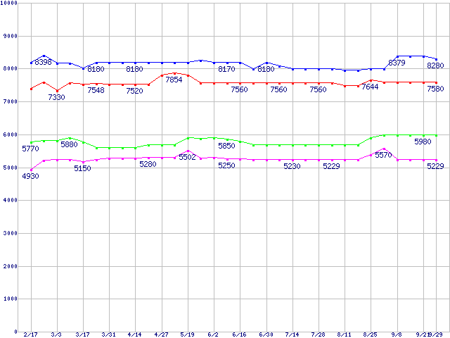 | Barracuda 7200.7 (7200rpm,Ultra ATA/100,2MB,80GB/Platter)の最安値推移 | | | (2005年2月17日~2005年9月29日) |