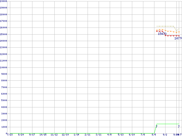 | Sempron 3300+ (2GHz,L2 128KB,64bit対応)の価格推移 | | | (2004年7月23日~2005年10月7日) |