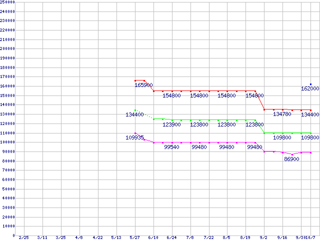 Socket 940 (FSB 1000MHz,L2 1MBx2,Dual Core)の最安値推移