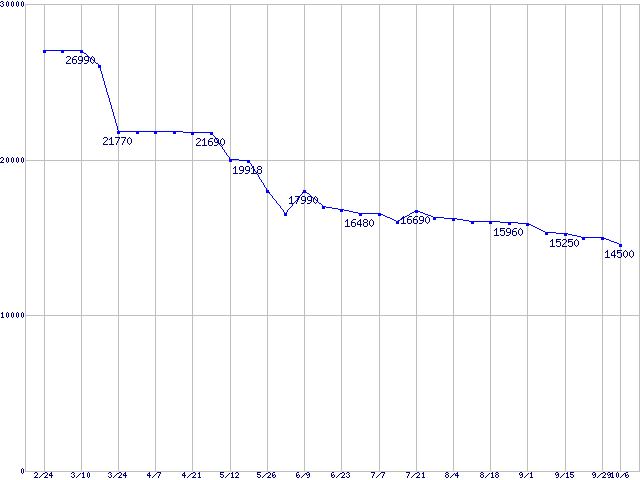 WD Caviar (7200rpm,Serial ATA/150,8MB)の最安値推移