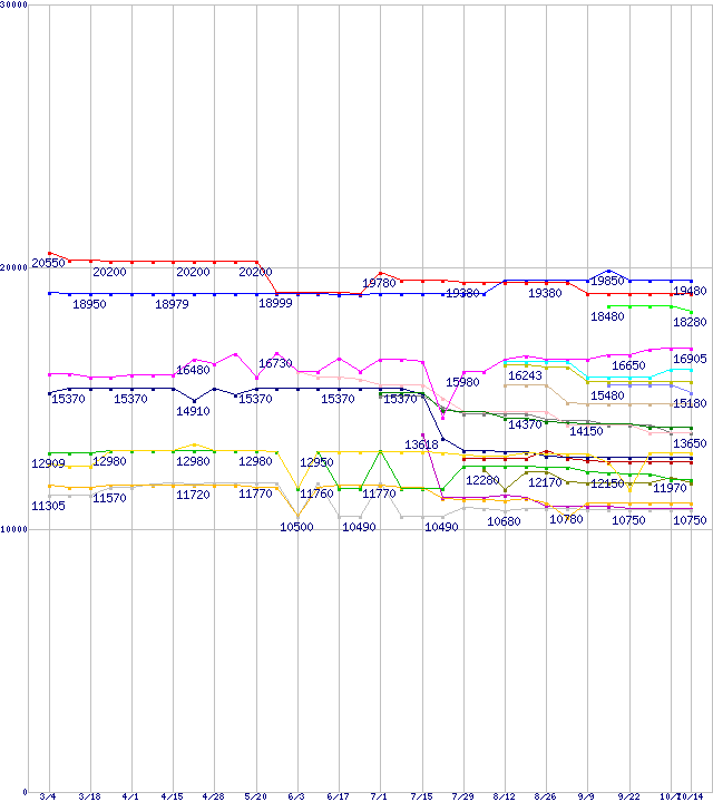 CPU主要製品(最安値1万円~2万円未満)の最安値推移