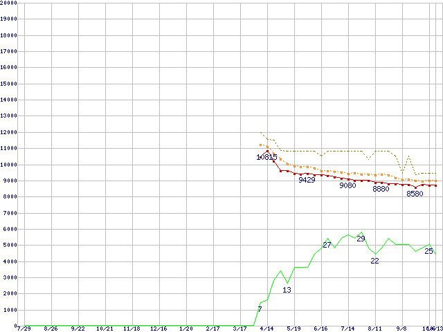 | HDT722516DLA380 (160GB,8MB)の価格推移 | | | (2004年7月29日~2005年10月13日) |