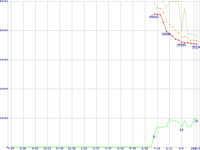 | HDS725050KLAT80 (500GB,8MB)の価格推移 | | | (2004年7月29日~2005年10月13日) |