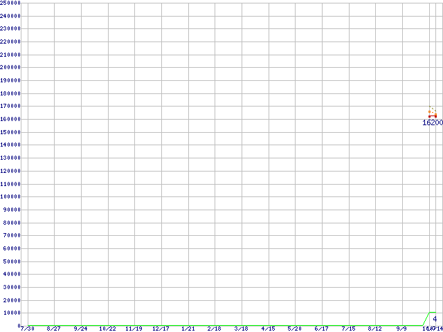 ※このグラフは過去のデータも税率5%相当に調整した税込み相当額のグラフです。 税率変更や、総額表示方式導入(2004年4月)の影響は除いています。 | | | ●凡例 | 最安値 (点線部は販売店未確認 または未調査) | 平均値 | 最高値 | ショップ数 |