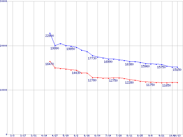 | MaXLine III (7200rpm,16MB,Ultra ATA/133,RoHS指令準拠)の最安値推移 | | | (2005年3月3日~2005年10月13日) |