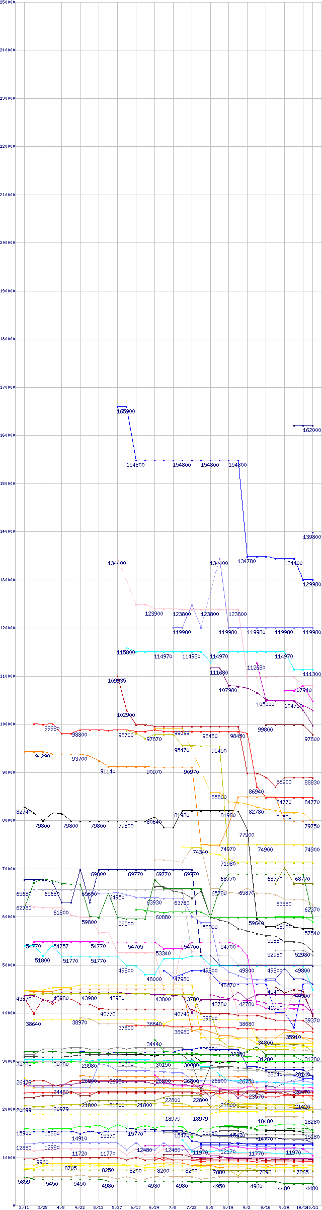※製品名をクリックすると個別のグラフを表示します ※点線部は販売店が確認できなかった、または調査データがないことを示します |