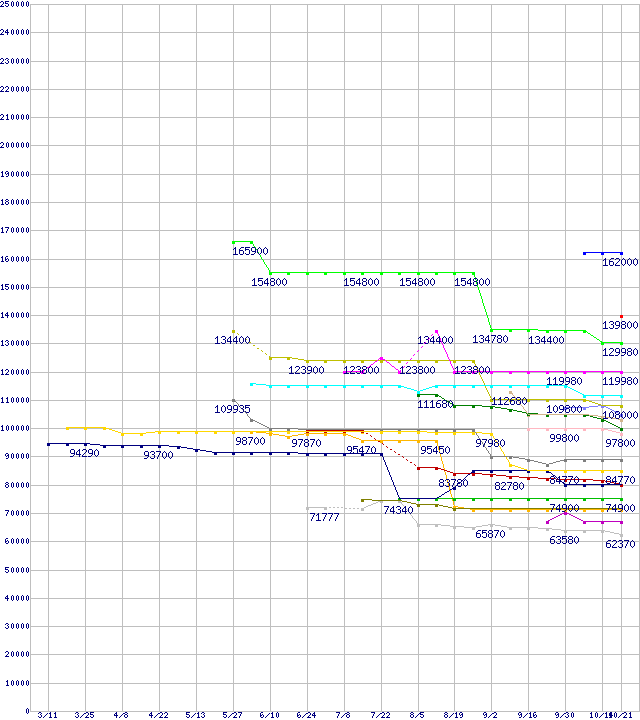 ※点線部は販売店が確認できなかった、または調査データがないことを示します
