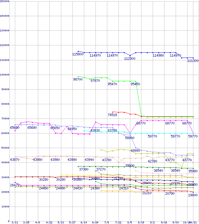 ※点線部は販売店が確認できなかった、または調査データがないことを示します