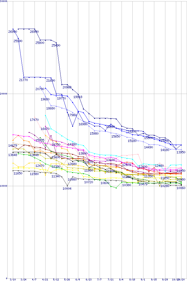 HDD主要製品(最安値1万円~1万5千円未満)の最安値推移