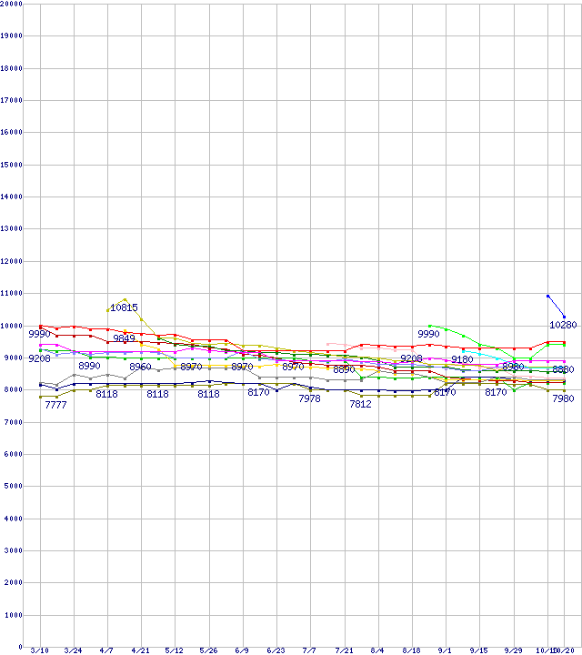 | HDD 160~200GB未満の最安値推移 | | | (2005年3月10日~2005年10月20日) |