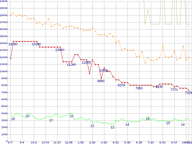 PC3200(DDR400) DDR SDRAM DIMM ECC対応 Registeredタイプの最安値推移