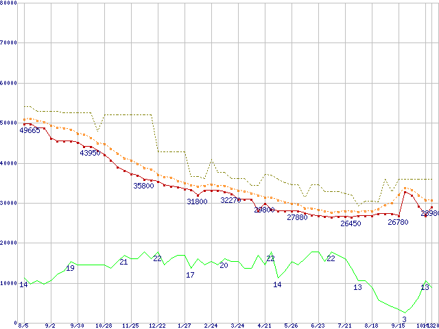 | HDS724040KLSA80 (400GB,8MB)の価格推移 | | | (2004年8月5日~2005年10月20日) |